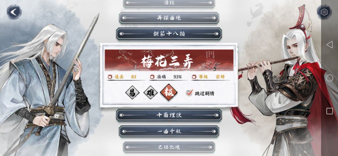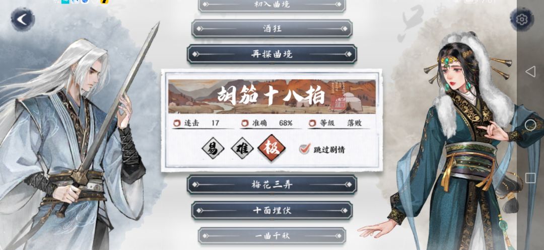 这首曲子也是比较简单,没有像十面埋伏那样,把握不好一次全局崩盘,也不像胡笳十八拍那样,节奏快到你眼花缭乱,只要掌握好节奏非常容易就打过去了。