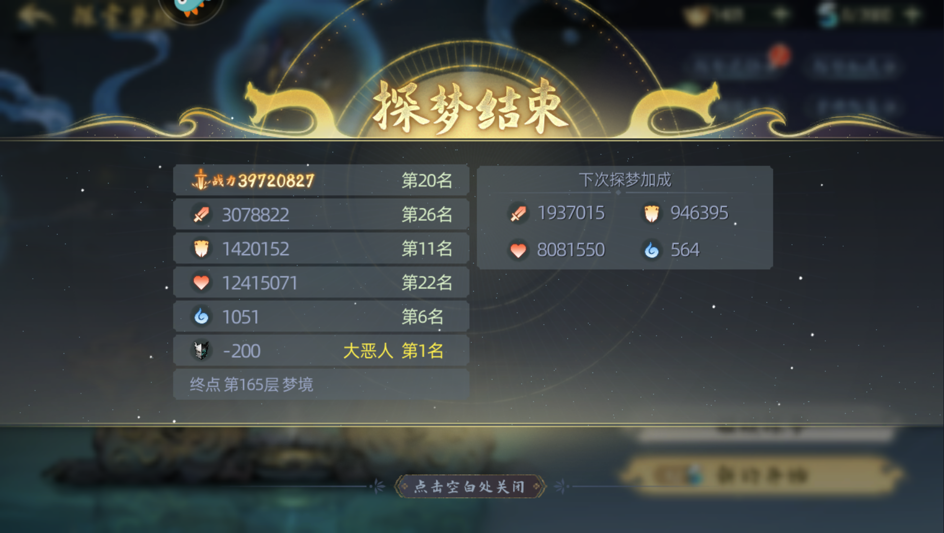 第一次打60—80层结束,大概是1800万战力—2600万战力,战力取决于多少梦物