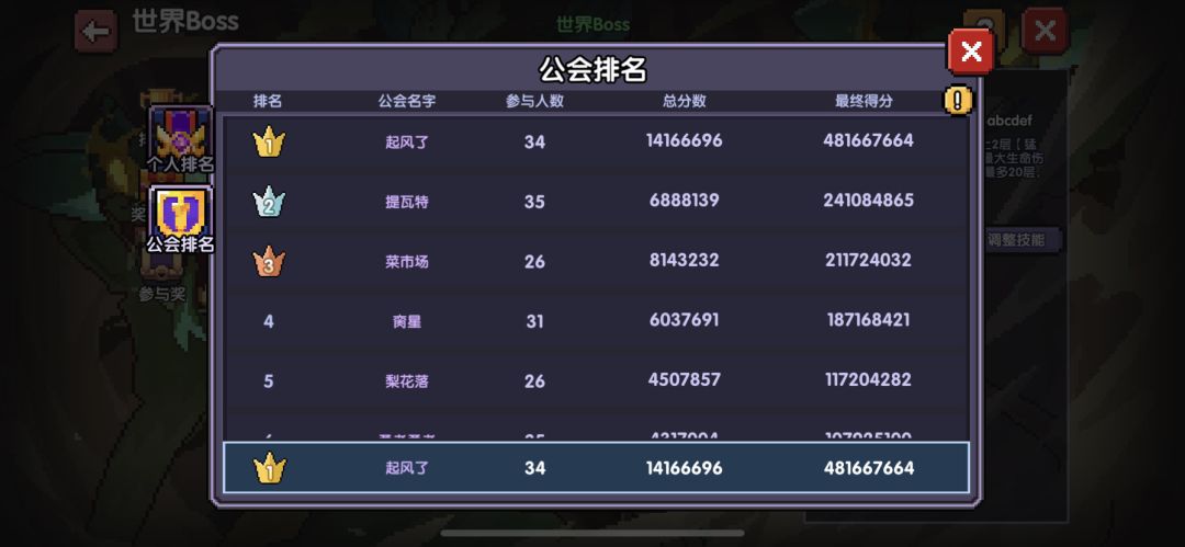兄弟们晚上好 今天一周一次的世界boss也结束了 柱子花落谁家 这都各凭本事各显神通
