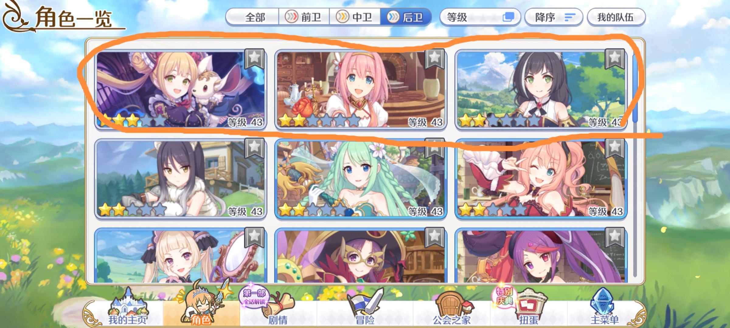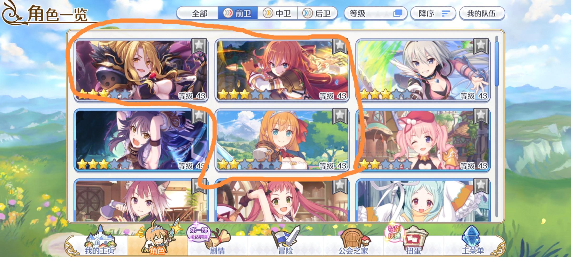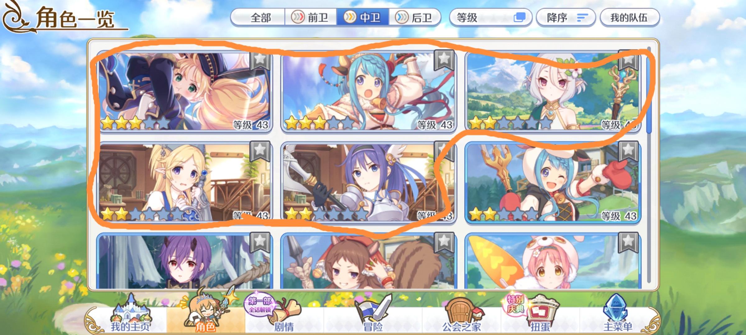现在主要用这些圈起来的角色比较多,主线6--7,有点打不动,前卫要嘎掉。求配个队。还有我看别人运气都好好,我一百六十抽了才这几个三星😭😭特别是前卫,感觉还没一星的佩可莉姆好用,主要是伤害不怎么够,又没有佩可莉姆能抗