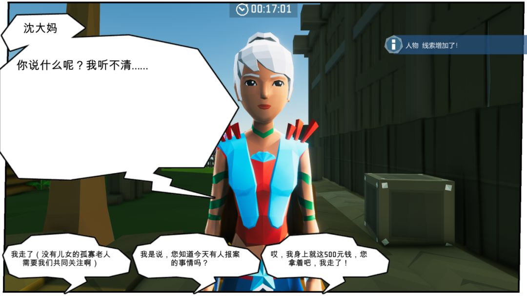 下楼后,继续向前可以遇到第三个人物“沈大妈”,与其对话选项中,除了“我走了”这个选项外,点击其他均无反应。