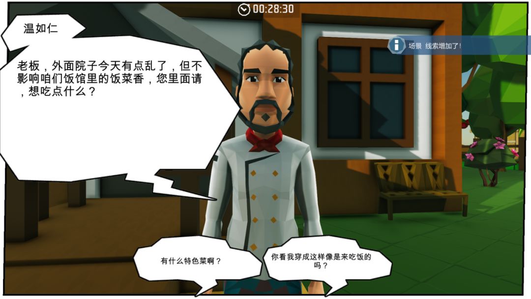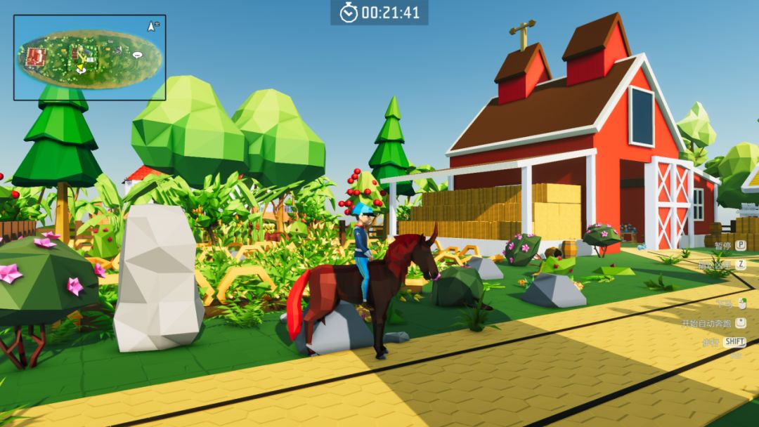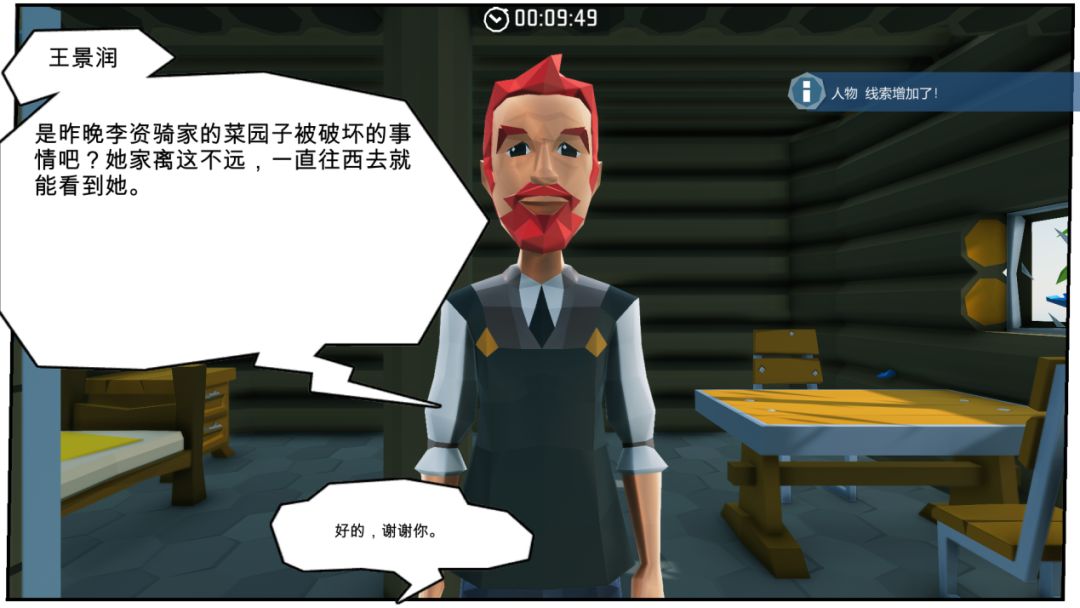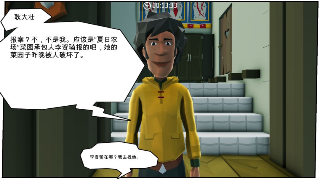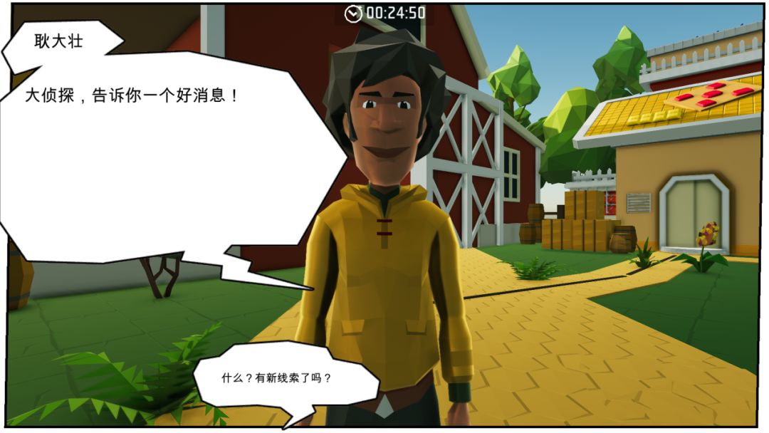 接下来,在前方小木屋前会见到第四个岛民(报案人)“李资骑”,对话后来到农场查看现场。骑乘门口的小红马,可大大节省岛主们移动的时间。