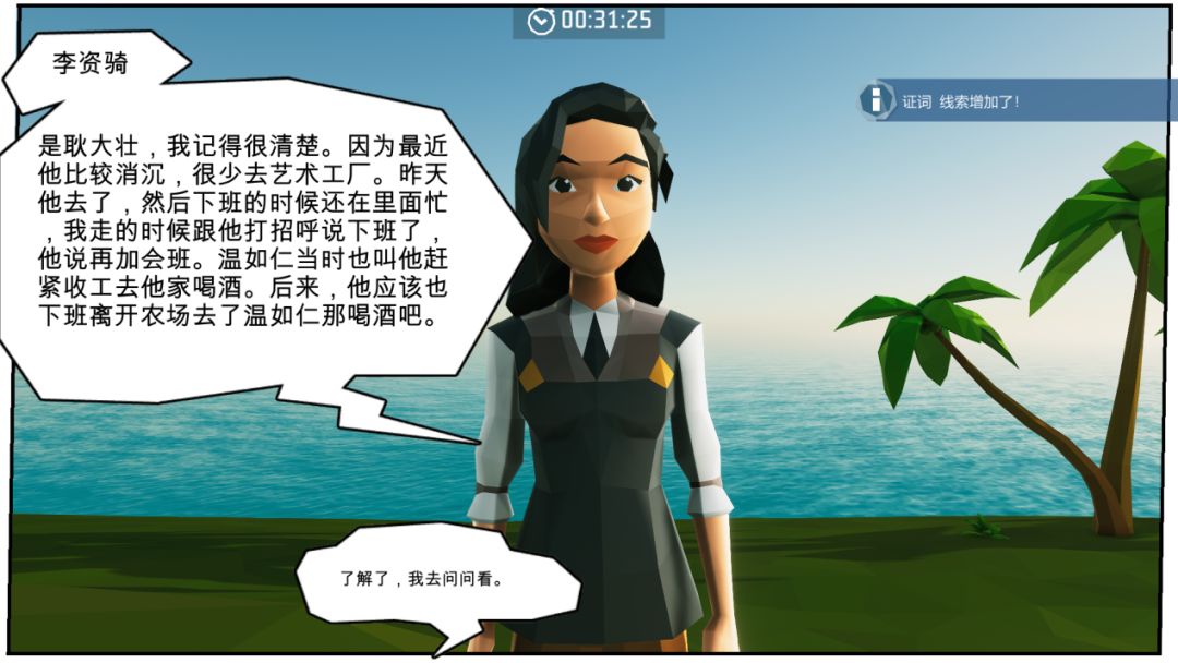 随后再往前去,与游客逐一进行对话寻找线索,最后根据所有的线索进行推测指认。究竟真相如何就留待各位岛主们自己前往探寻啦!