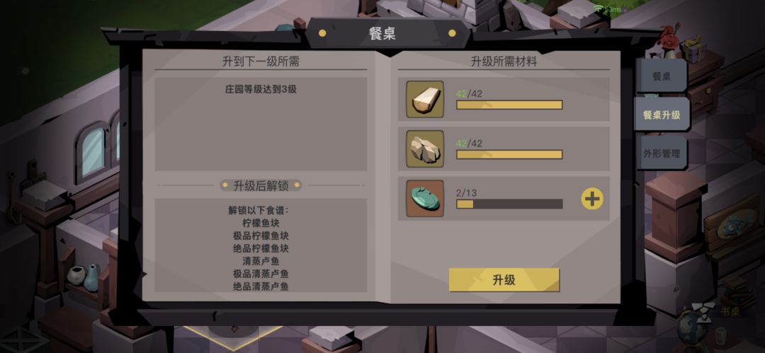 最后介绍一下餐桌的升级系统:
