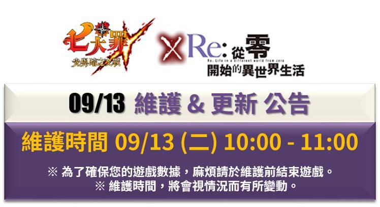 ※ 七大罪 X Re:ZERO合作回歸第1部的活動內容,請參見[09/06 維護與更新公告 & 活動介紹]。