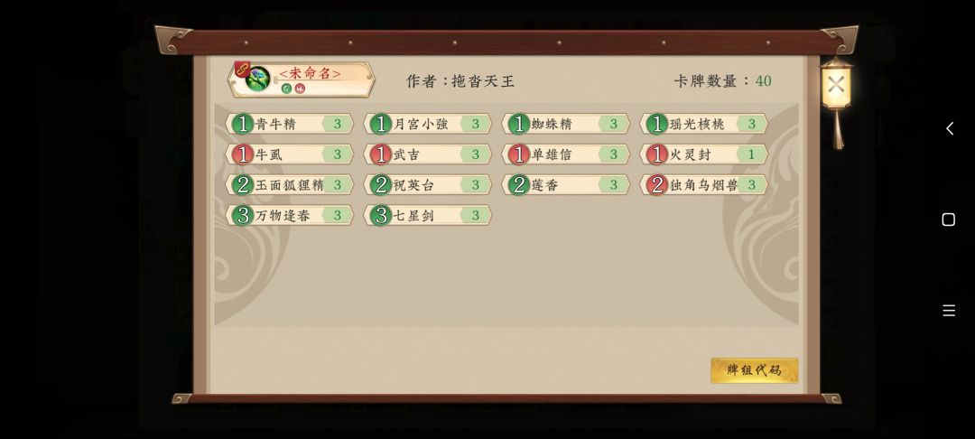 打法:使劲扑怪,然后万物逢春,大量过牌回血,七星剑偷血。七星剑配合穿透和速攻怪