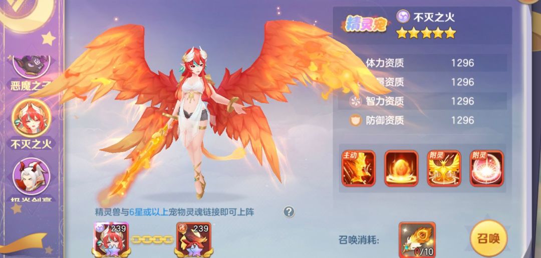 目前有不灭之火,恶魔之子,精灵神龙,极焱剑豪四大精灵兽。