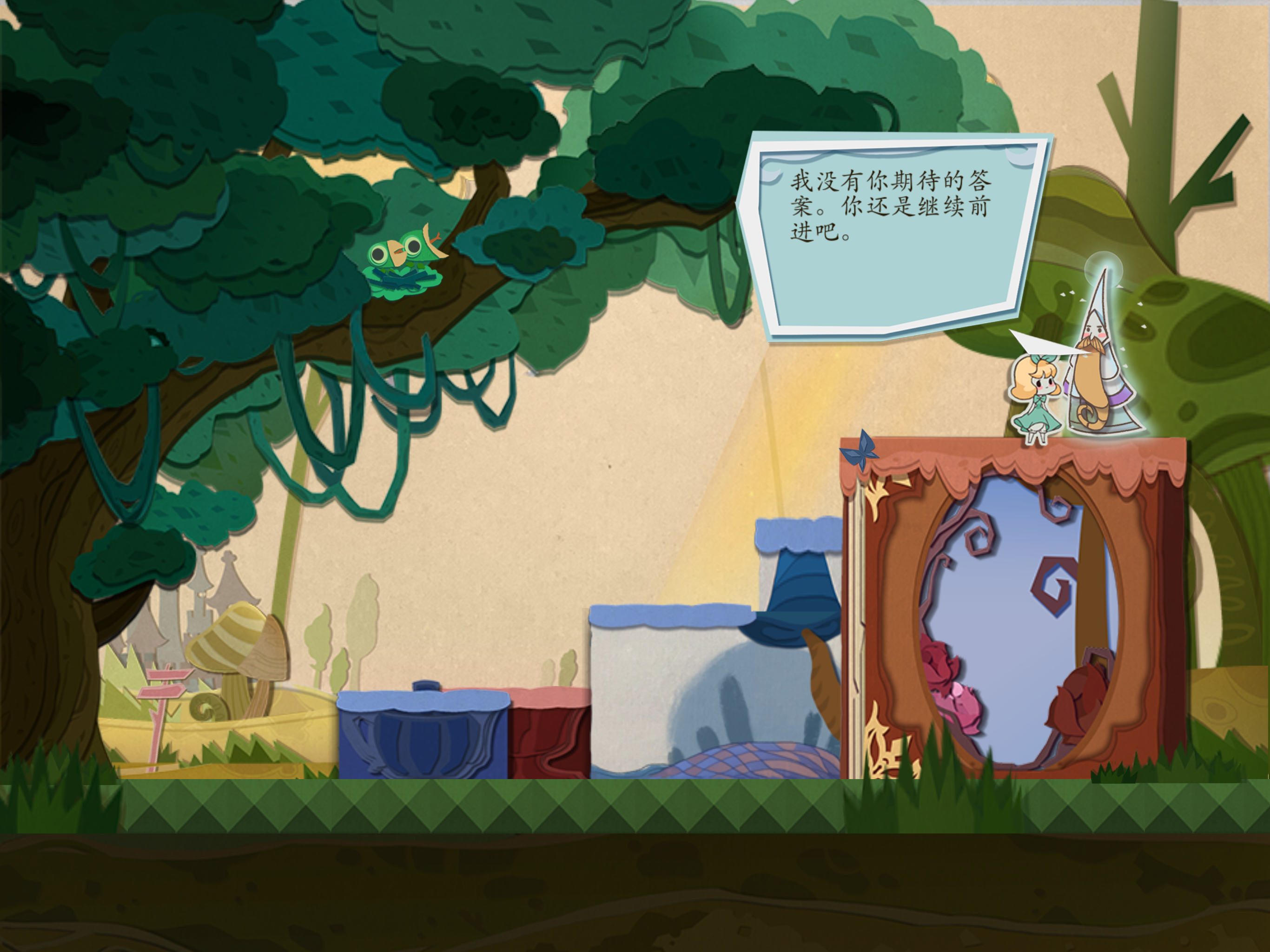故事发生在一个少女朦朦胧胧的清醒中,她是纸片上的一幅画,醒来以后,周围也都是纸片,她不知道自己从哪来,在哪里,又要到哪去……她没有记忆,不知道自己的故事是什么,于是辗转在《爱丽丝梦游仙境》《丑小鸭》还有《锡兵的故事》中………冒险(解谜)。