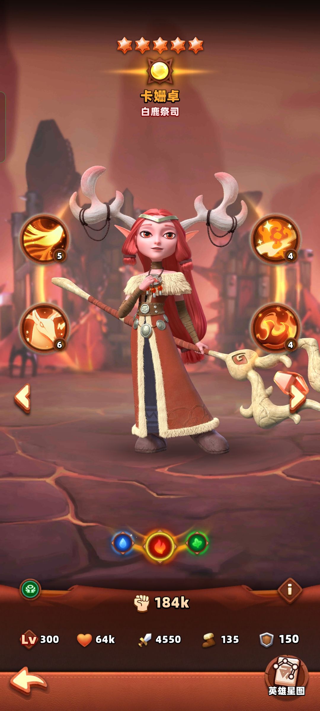 火鹿星级,技能等级没起来不要用,也不好用,羁绊前期很重要,前期不建议培养。