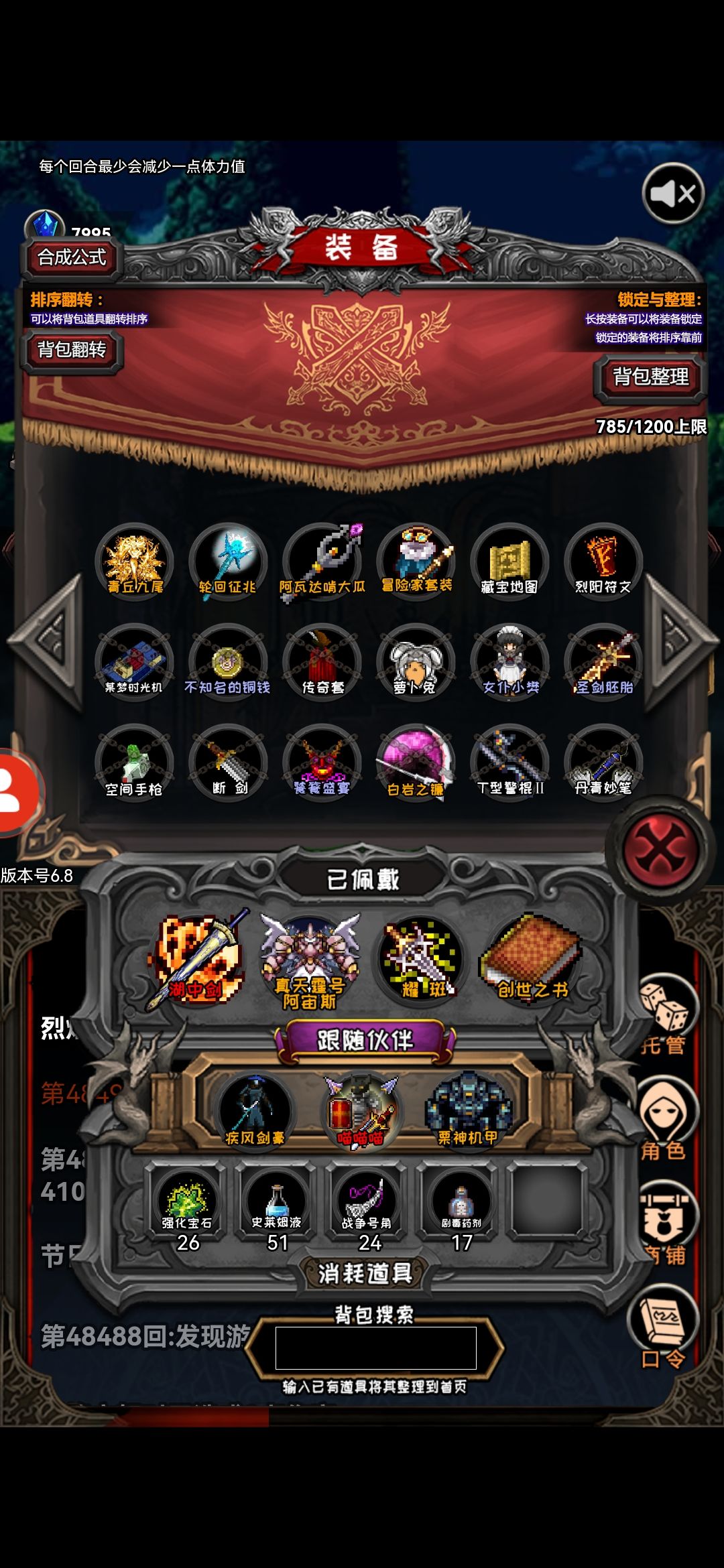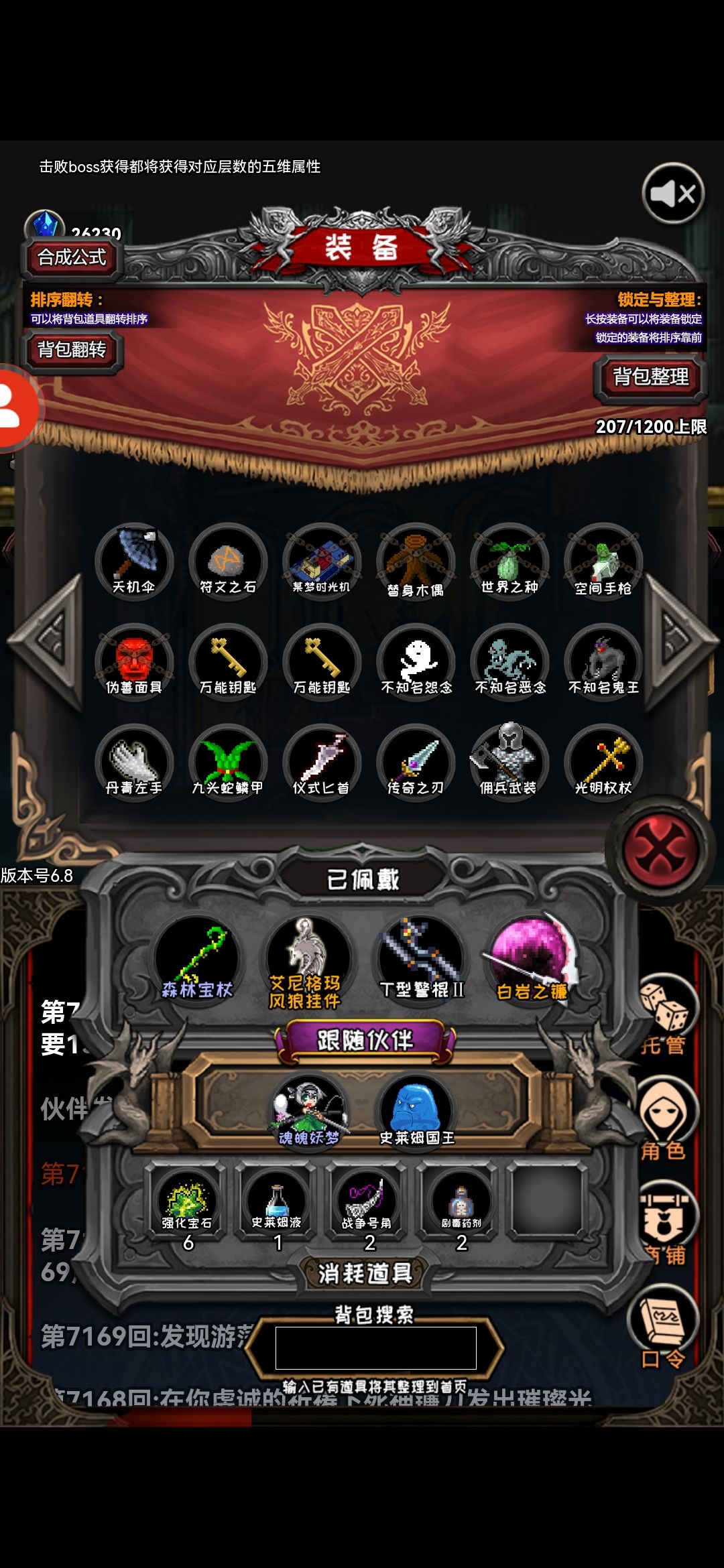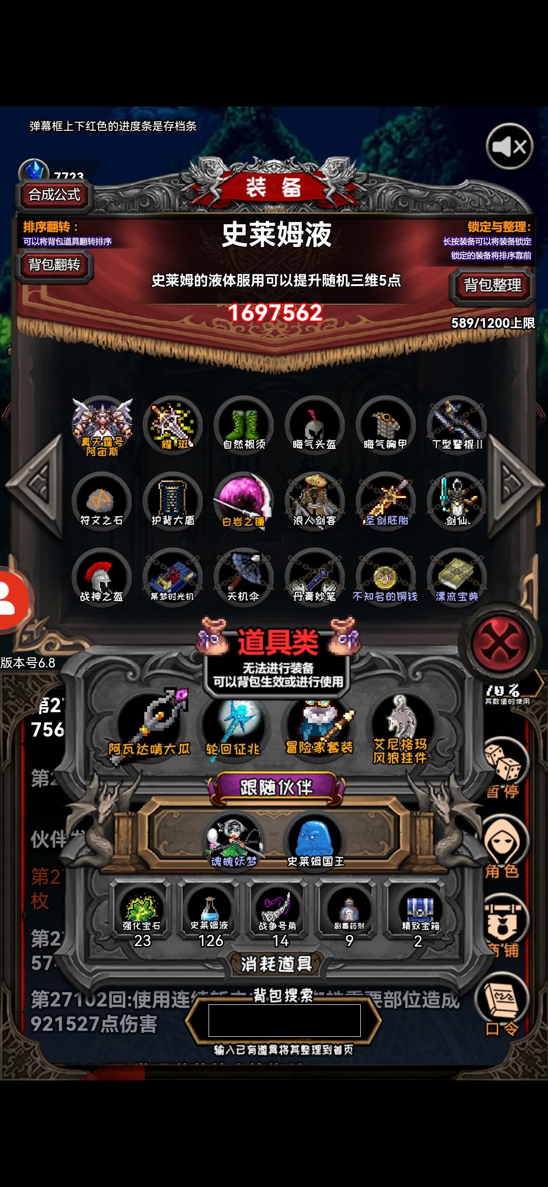 挂机到8000层减伤可能扛不住了,创世之书换成末日启示,这也是最终装备了,三生石sl下血量。(记得多和点蓝药2000左右,末日挺耗蓝药的)
