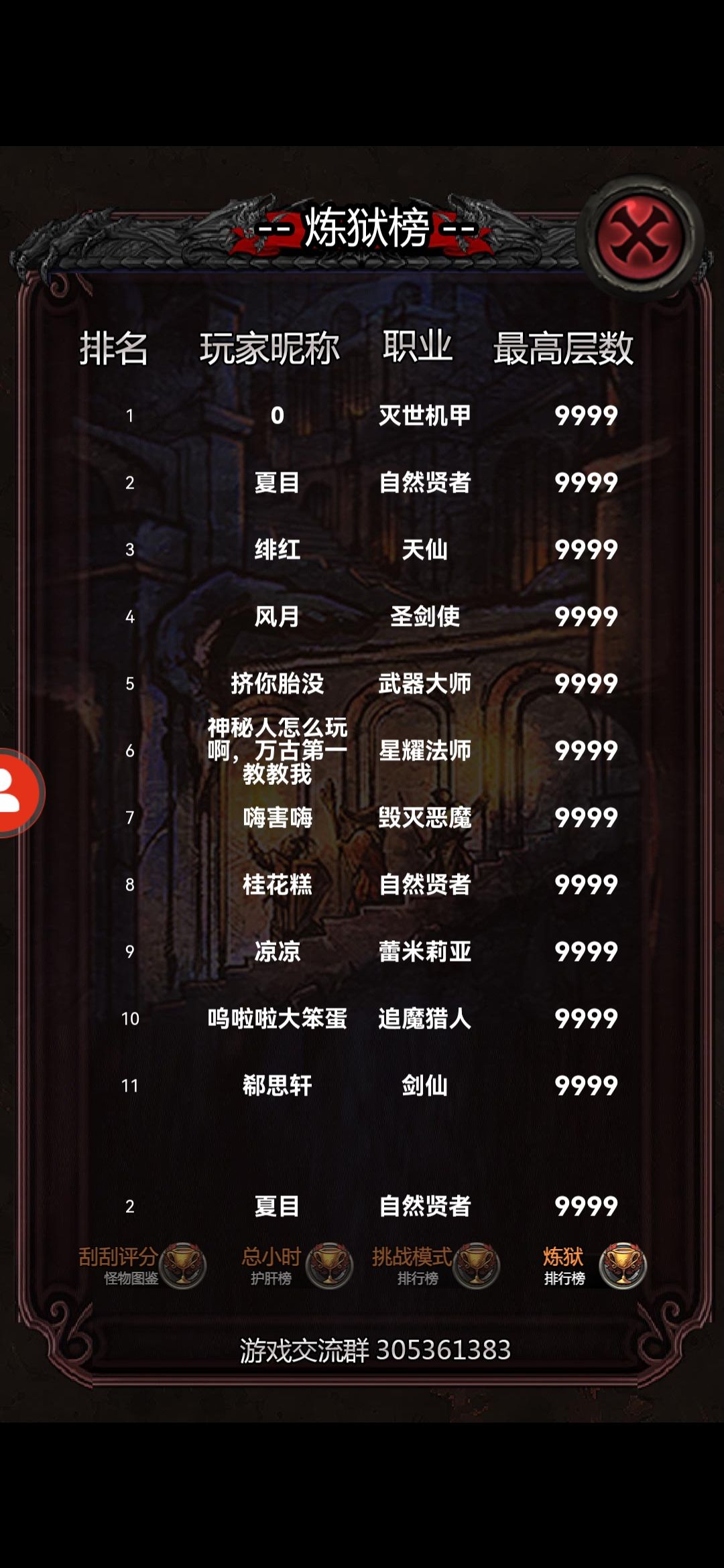 最后到9000层的时候,可以把装备全脱了,换上神恩套,自杀个几次叠下属性。然后这个时候因为怪的攻击力上升到千亿万亿了,外加我们已经不缺伤害了,换上我们前期拿到的神技,黑暗手。保证生存能力一路杀到1万层。