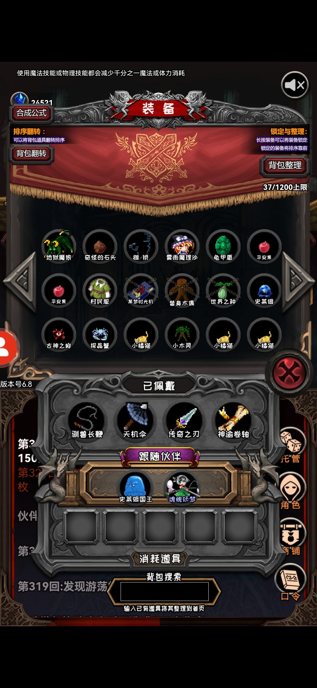 这边默认是有30元赞助,因为前期节奏很重要,开局先鸽子王sl个千机伞,然后去商店买宠物蛋,整个史莱姆(没有问题也不是太大)开局口令:金币,面具,魔理沙,妖梦,匕首,骨钉。这样大概能安稳度过200层。