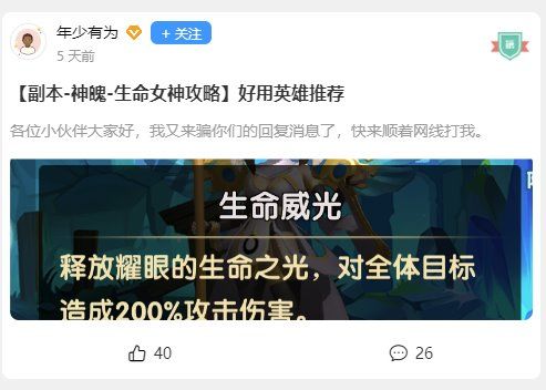 冒险攻略集锦1、【副本-神魄-生命女神攻略】好用英雄推荐--年少有为