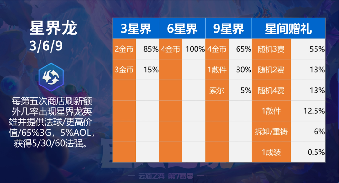 而最基本的8费的龙和4费卡的概率是一样的所以只有速冲7人口才有最大的概率白嫖到一张龙而只要白嫖到除了索尔的任何一张龙你都会当下变得很强