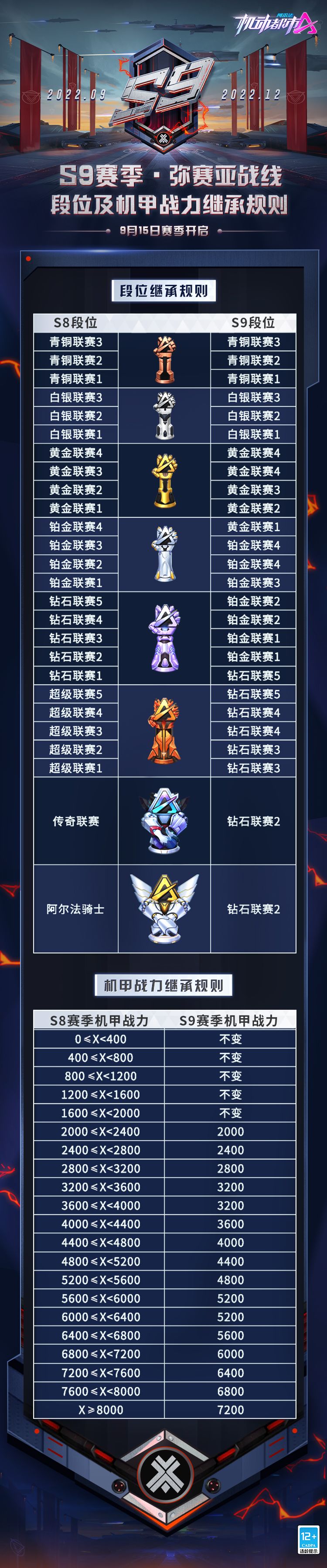 【S9赛季】段位及机甲战力继承规则