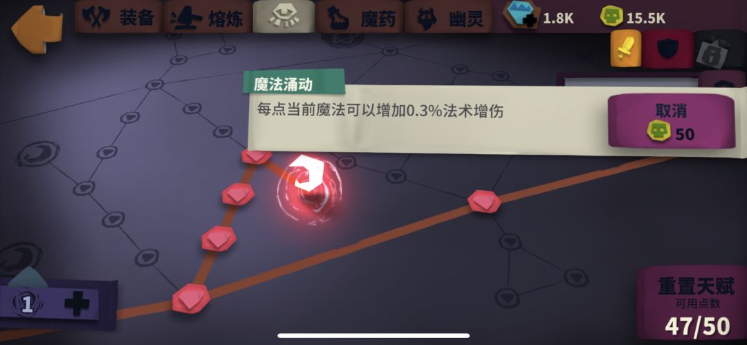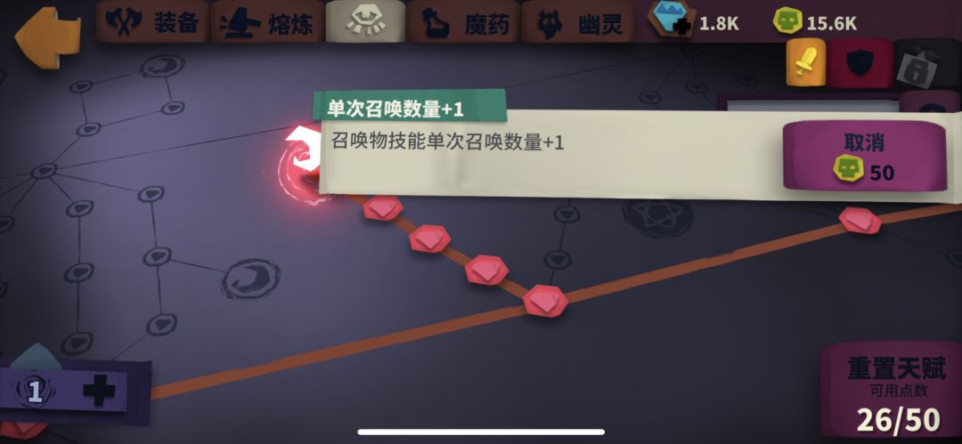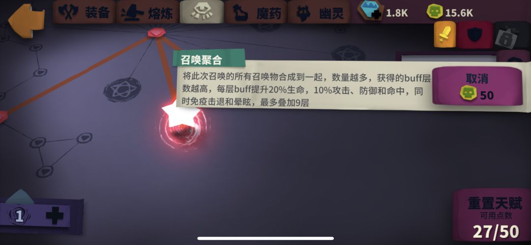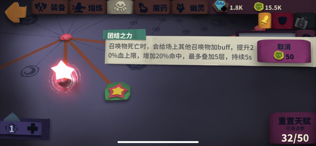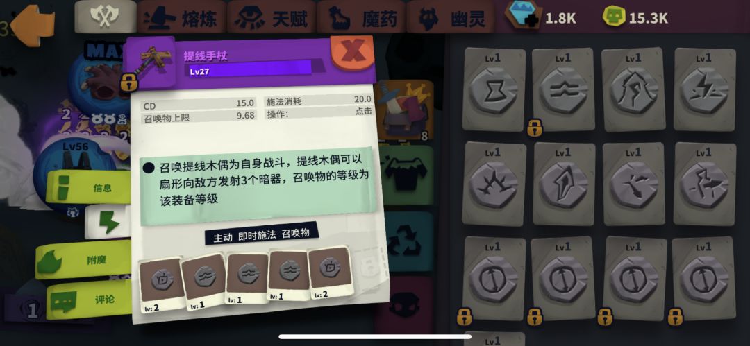 5、洗提线手杖【记得绿色要有2个词条,蓝色要有3个词条的才洗哦】加强重随石(技能)洗出召唤物上限,点铜石升到2级,点金石升到3级,加强最大石点满40%。ps:可以后面洗~