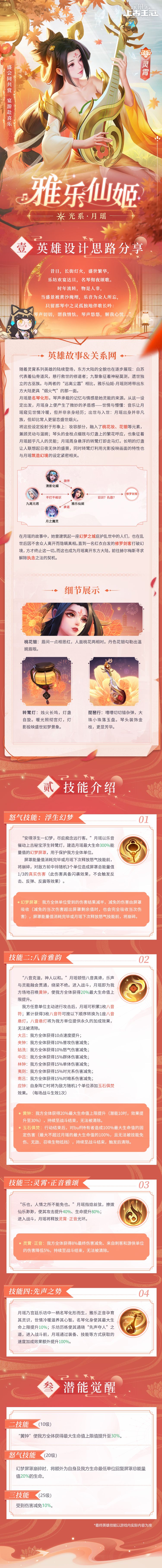 巧笑嫣然,指捻复挑,珠玉般的乐音随之流淌而出,灵霄主题英雄的第三位,光系的【雅乐仙姬·月瑶】来啦!