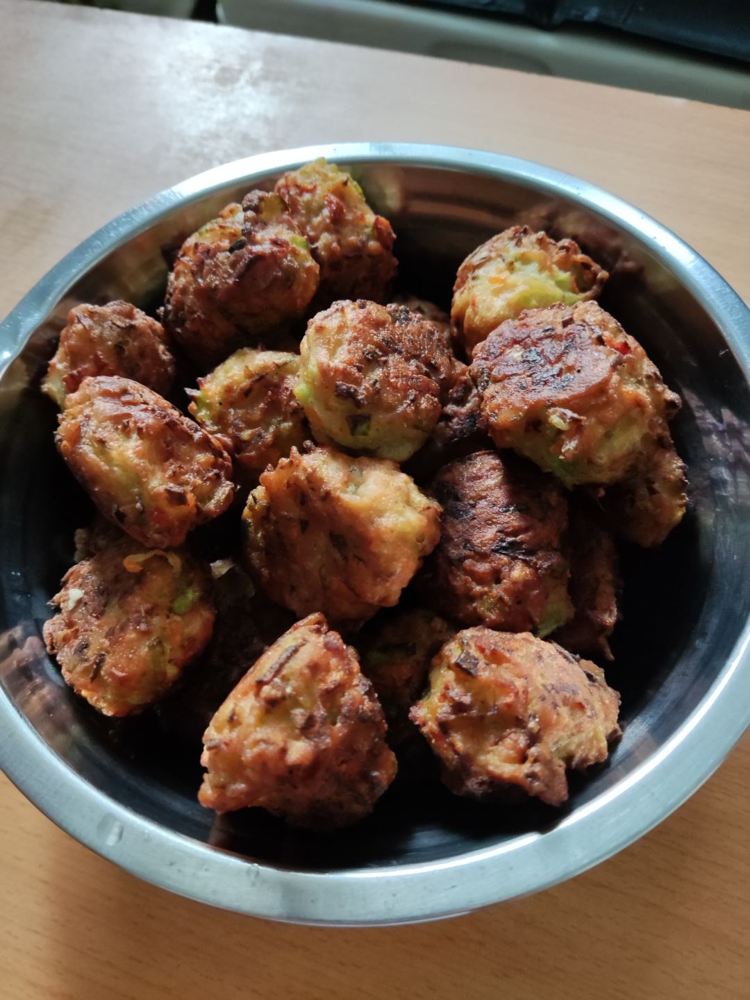 青萝卜胡萝卜切丝炸的素丸子,外皮焦脆里面烫嘴