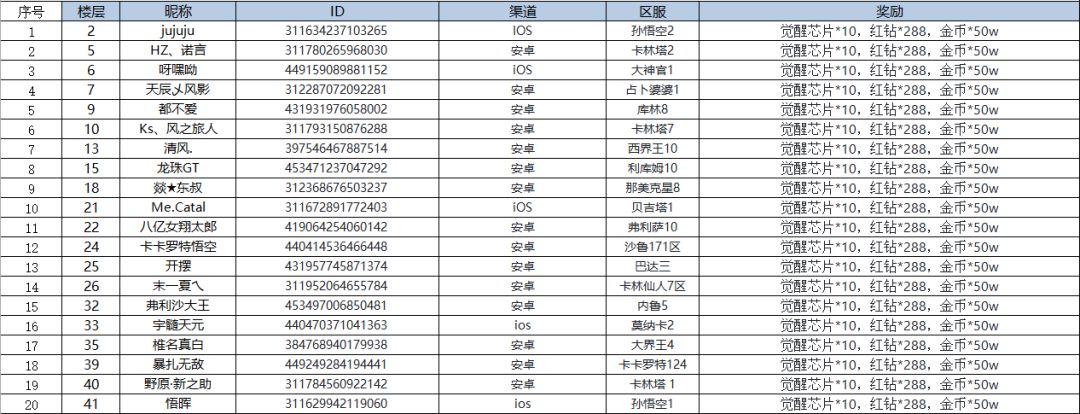 恭喜以下20位赛亚人在中秋活动中中奖!!