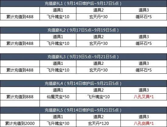 4、2000充值豪礼:活动期间内如不需要道具3:可联系客服兑换灰太狼、化龙诀、兽神诀、鲲鹏、鸾鸟、血神诀、上古丹书、八孔双异能胚子其中1个。