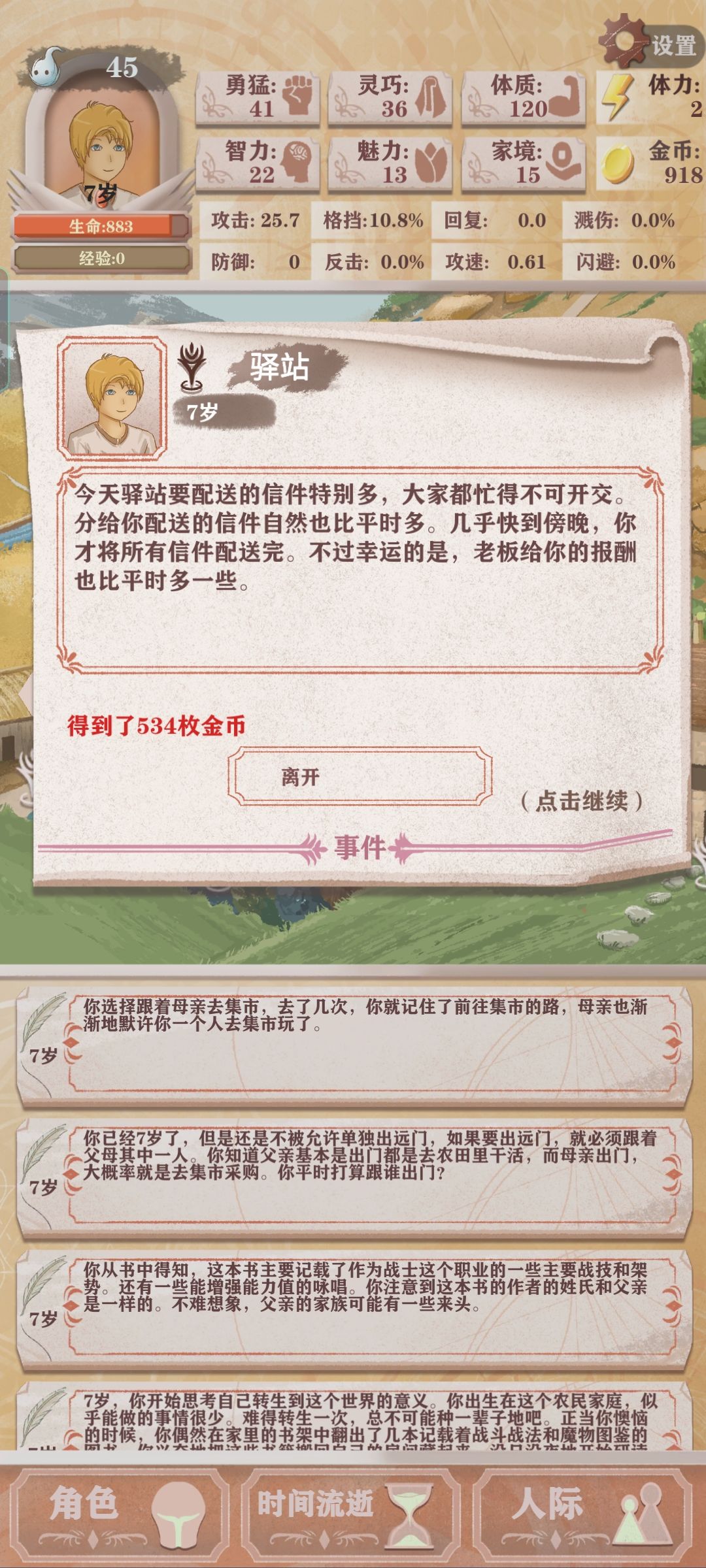 1.体质是前期最赚钱的打工方式而且剩体力,前期多跑步,120体质7岁送信(多给钱事件)可得500,保障前期开局。10岁开始吃喝去刷好感费体力的事件。