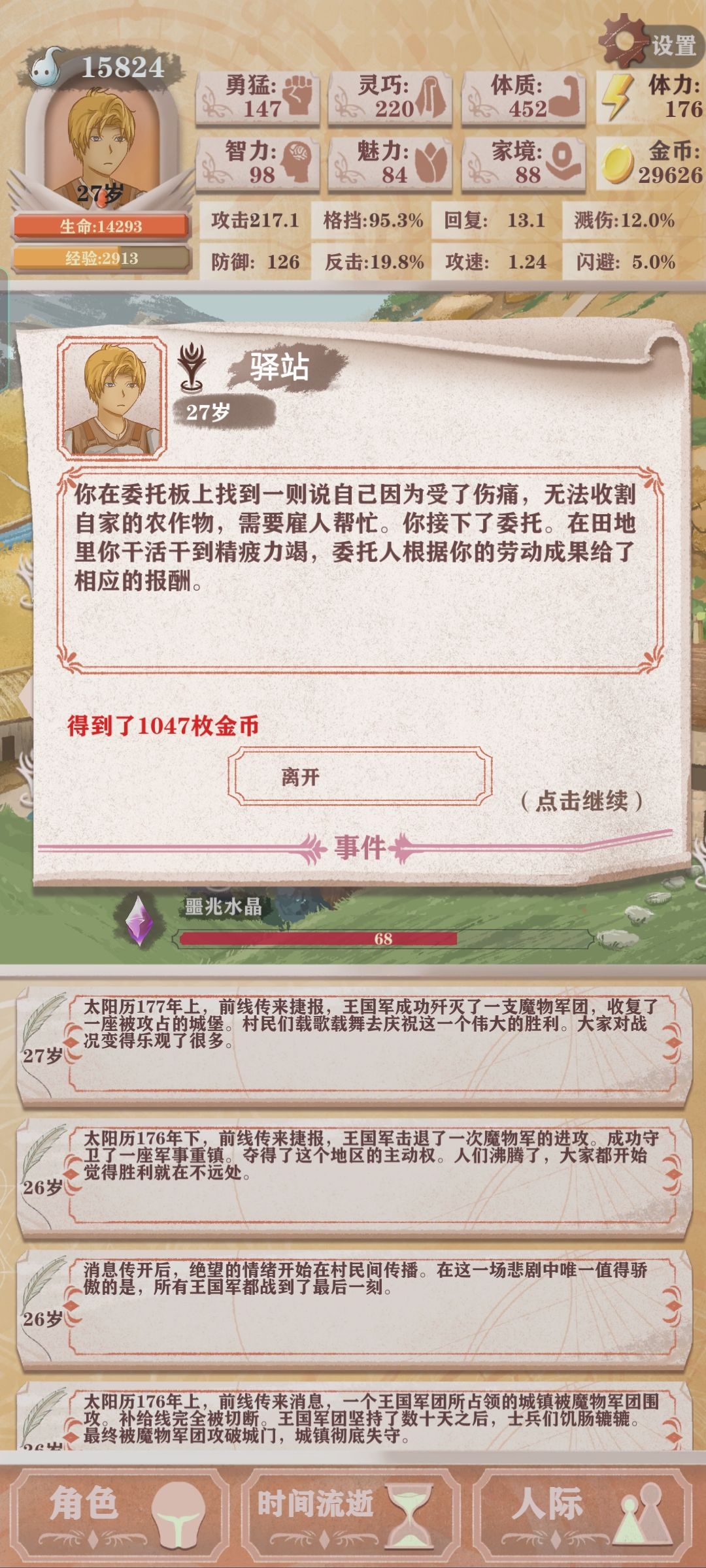 3.15岁前最好把故事书+10智力刷出,前期不看完故事书睡觉概率大概在40%左右,这个是很容易做到的,前期智力好了委托做家教收益也不错。(72智力,魅力54家教收益505,体质272割草收益606,这是我78噩梦水晶开精灵图的属性)。