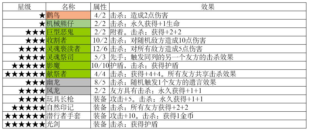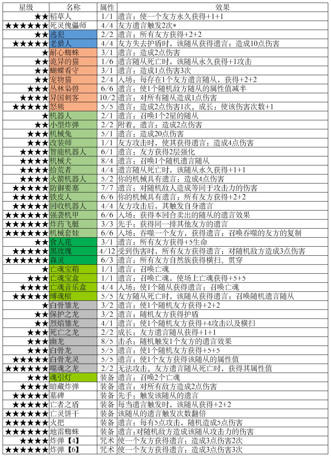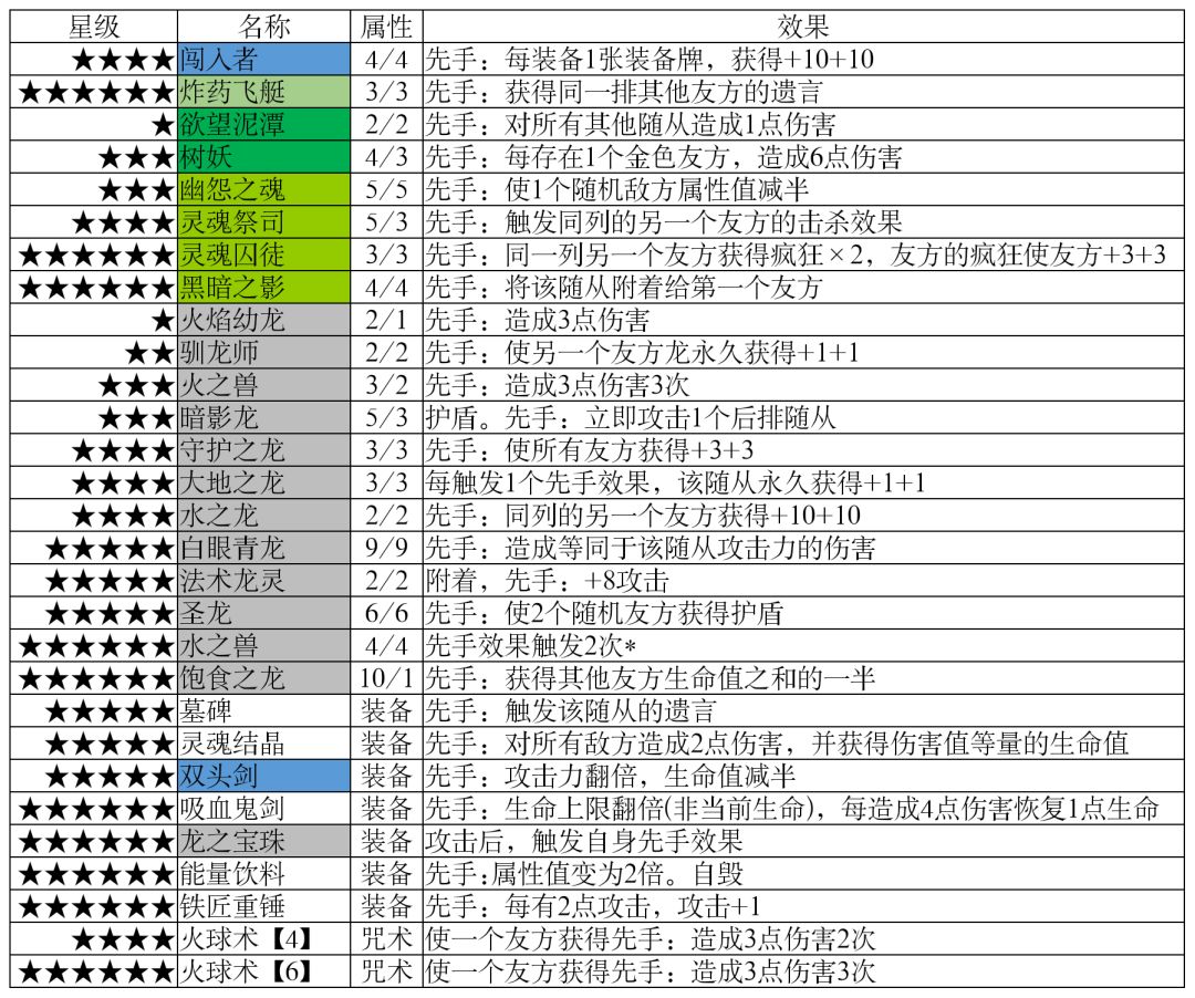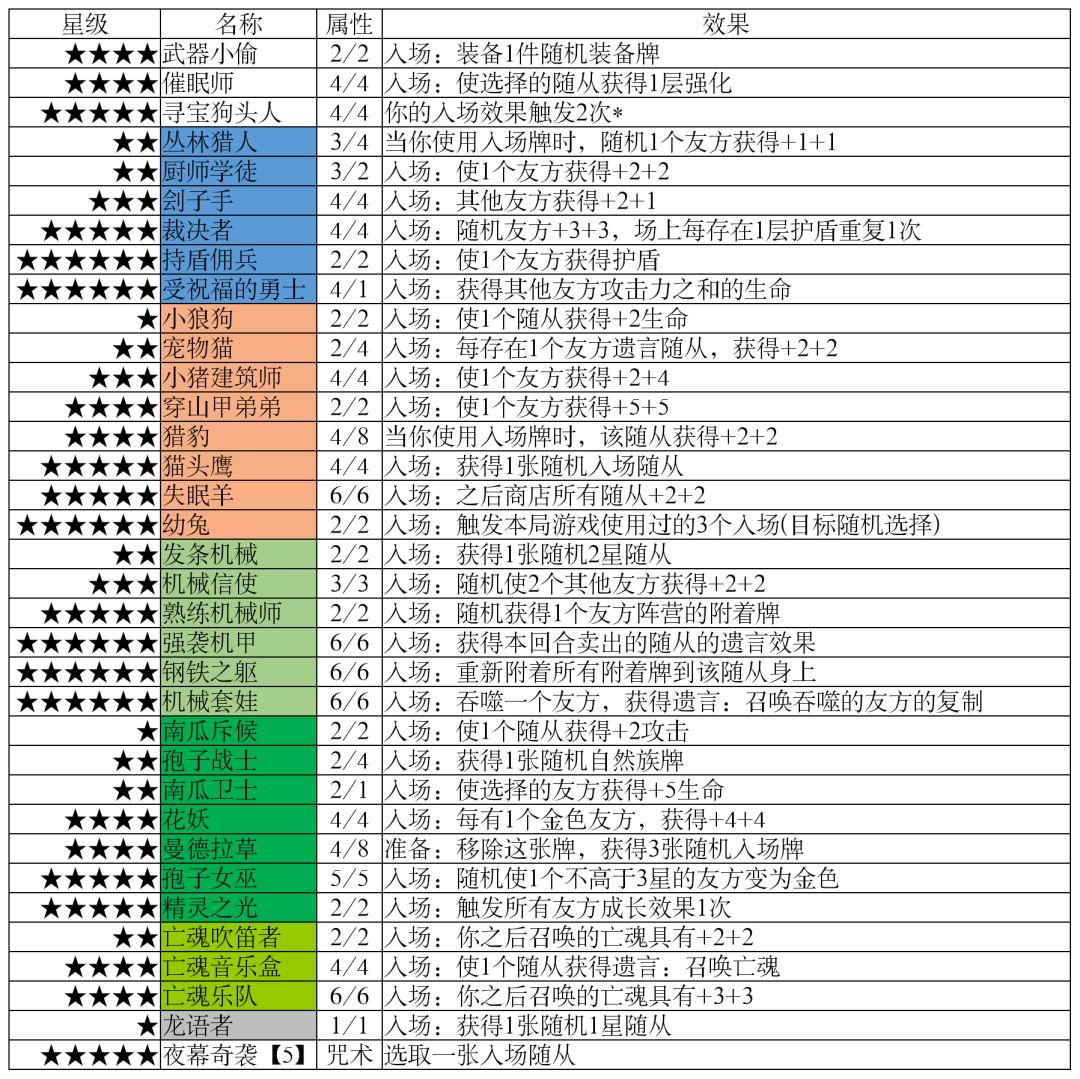 随从分布(星级/阵营)