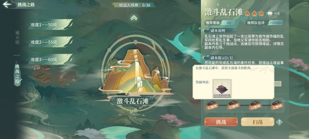 村落boss,这关最好打,给你送了三个帮手,什么仙灵琼露虎煞丹不要吝啬,都给他们吃,保住他们不死,而且他们输出防御都比较可观,还可以加暴击,我们这关就用凌雪+老檀+铃兰(秋风刀配置,详情参考游戏里面的推荐,心决不用改破御)+王维。