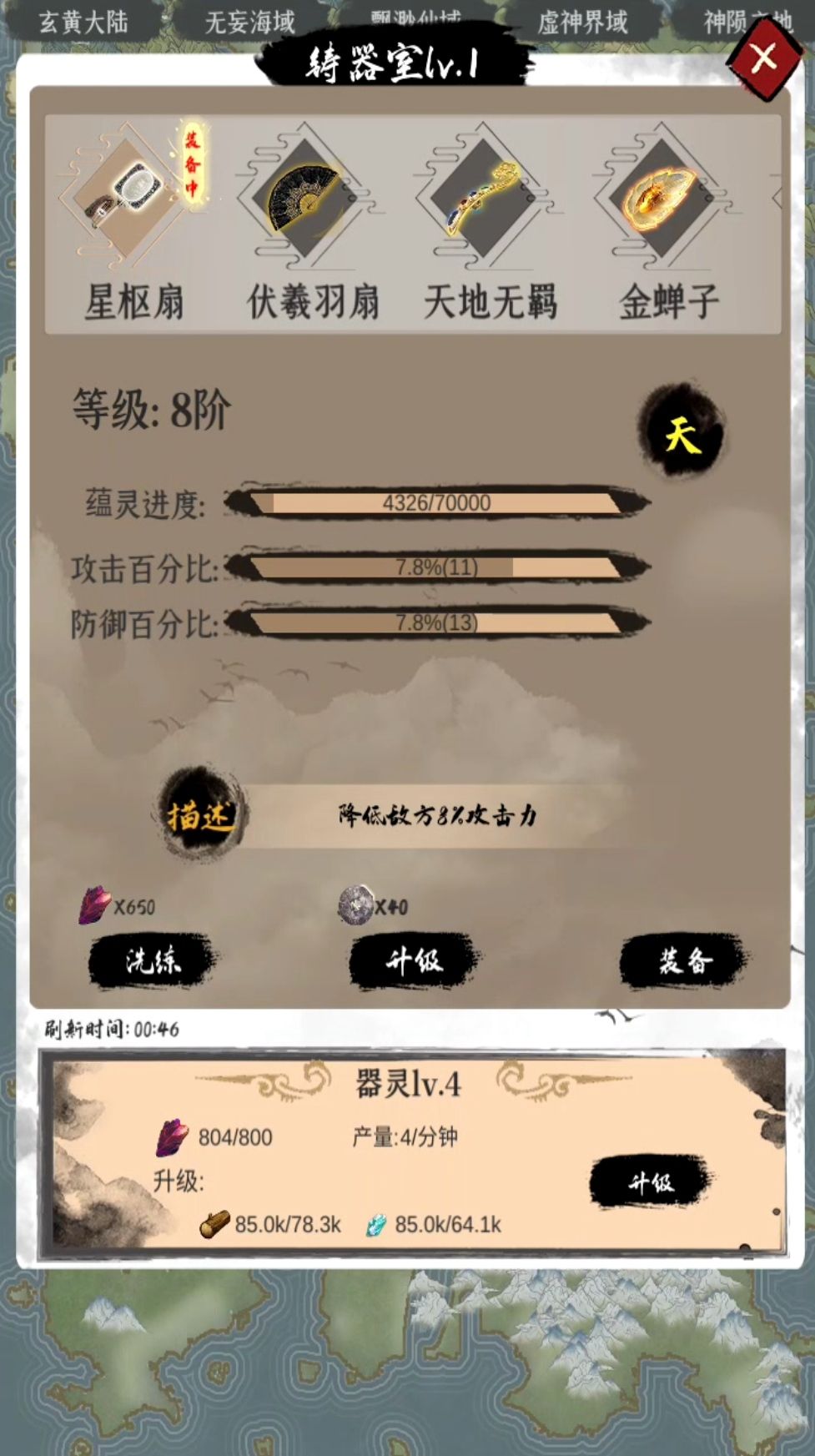 对比炼器室。