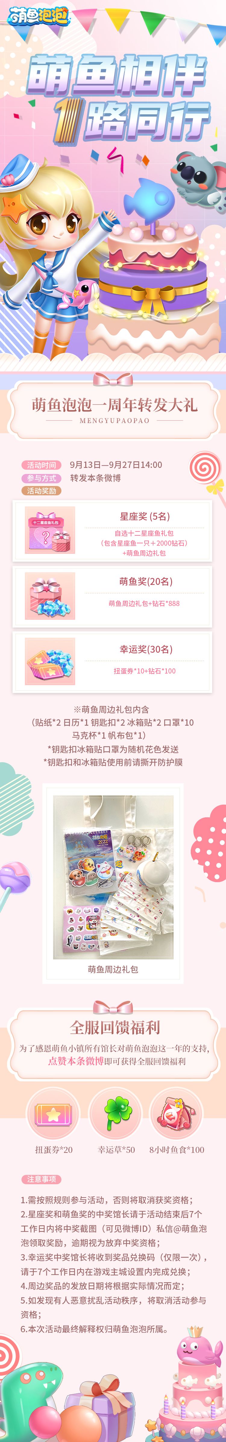 萌鱼相伴,一路同行,泡泡在微博准备了超多惊喜和奖励活动,为周年庆的快乐氛围添砖加瓦~