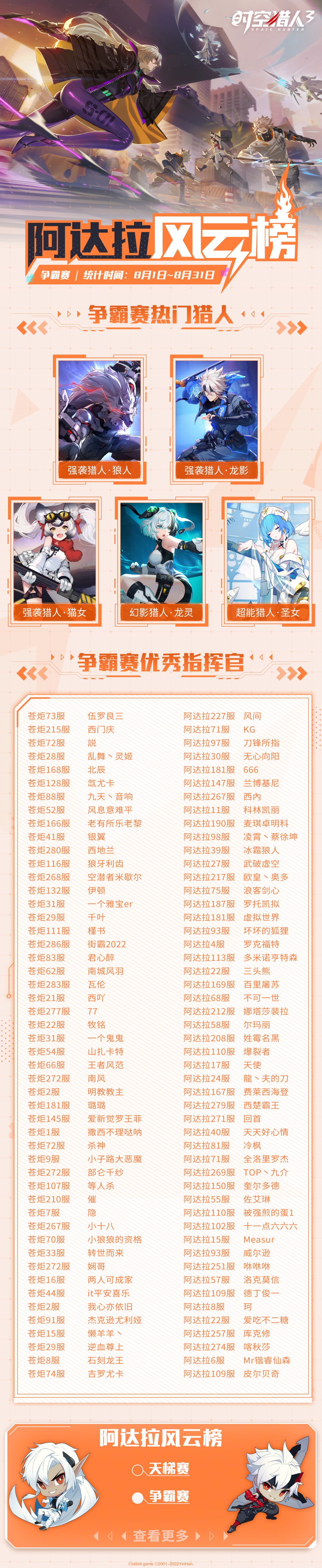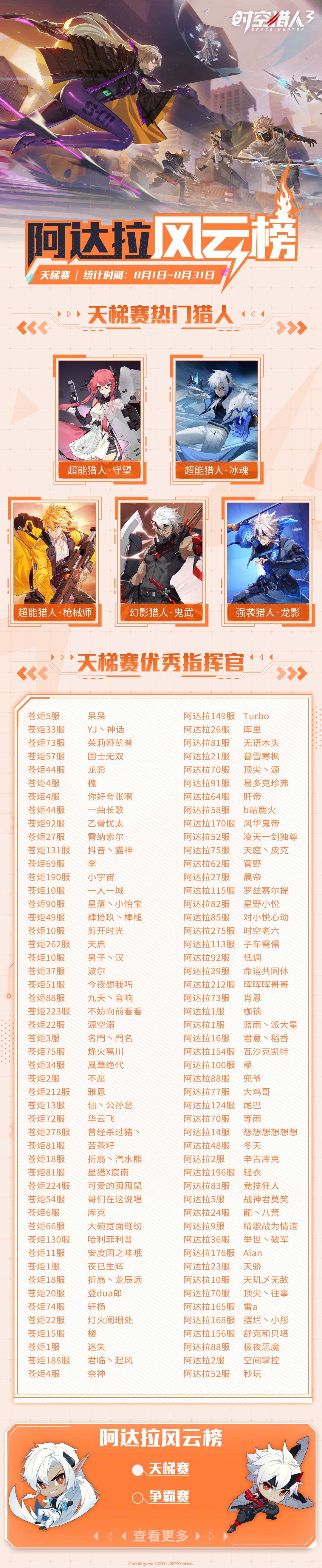 【阿达拉风云榜】 8月热门猎人与优秀指挥官揭晓!(内含福利兑换码)