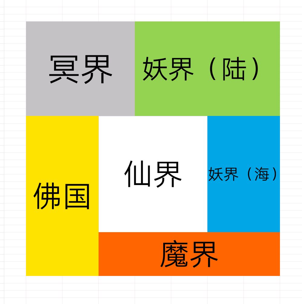 还有一些侧面性的证明,例如按照传统设置,北方偏寒,南方偏炎,而冥界忘川的源头有洞天福地“冰风谷”,魔界深处有洞天福地“黑火城”,证据性不足,但是也比较符合我排列的诸界地图分布。