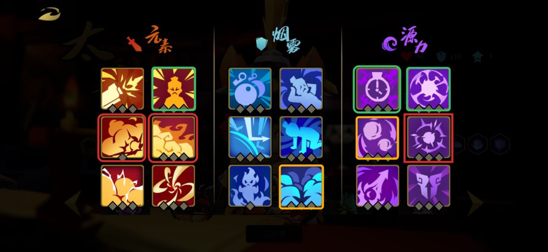 然后,我们来介绍觉醒加点,我已经框出来了,红色为核心觉醒,有出必点,绿色属于次要核心觉醒优先级,黄色属于替补席两者均未出现的情况下,点一点维持下尊严。详细效果我就不介绍了,红色的名称从左往右分别是元素余韵、火焰支配、聚能光球;绿色分别是元素之怒、强力震颤(建议三级,减少源力球30%CD)、超巨光球(建议两级看个人喜好),分裂之球判定减CD是只要控住的或者每爆炸一下都算,也就是说聚能光球+上超巨光球,基本上只要有两个怪就能无CD,所以源力之泉相对来说并不重要了如果觉醒比较糊,可以点一下。加上三级强力震颤,就是狗熊来了也得祈祷你不要突他脸,
