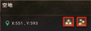 点击任意区块,可以分享或收藏该坐标,收藏的坐标后续能在收藏夹(游戏下方五角星处)中找到;