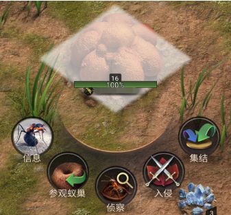 点击其他玩家蚁巢-入侵,派出部队对玩家发起进攻,进攻胜利可掠夺他的资源。还可以发起“集结”,与盟友一起联合进攻。