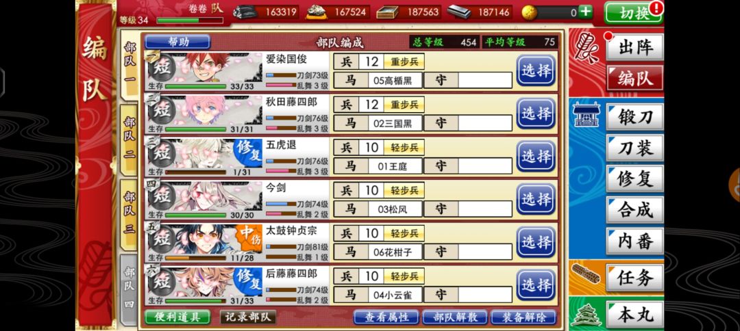 然后被五图远战教育了……万幸运气还是可以的,五图前三关报废了点刀装也是过了。但是5-4我一开局就被打掉了一个刀装……吓得我直接回本丸查攻略去了。可是本婶查了老半天也没找着全普短的等级参考……就只能自己探索了。