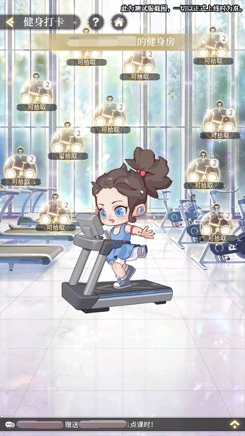 打卡健身:消耗课时进行健身,可消耗卡路里,消耗卡路里进度条满后,即健身结束,可获得健身奖励。