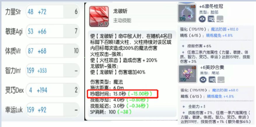 6.46×30=193.8(30灵巧可减少1秒可变吟唱)