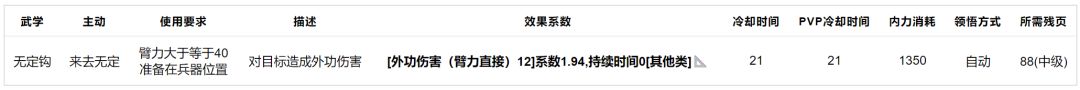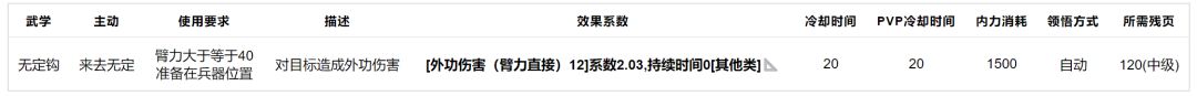 无定钩:七煞剑的过渡双持武学,技能与平砍均不强,中级武学。
