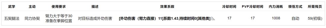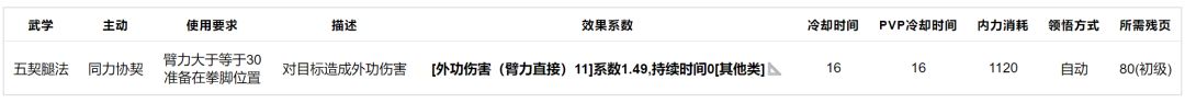 五契腿法:效果如下,基础武学,没有练的必要。