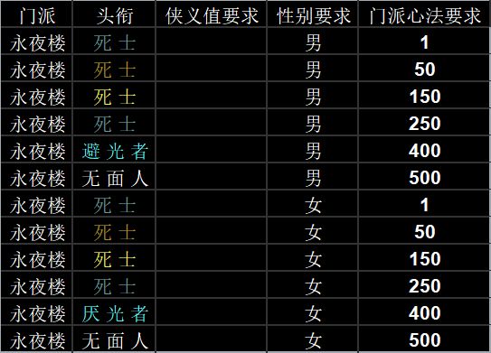 门派攻略 - 永夜楼