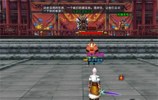 击败三波小怪后,第一个BOSS酒井优会跳下大戏台,来到场下与我们作战。