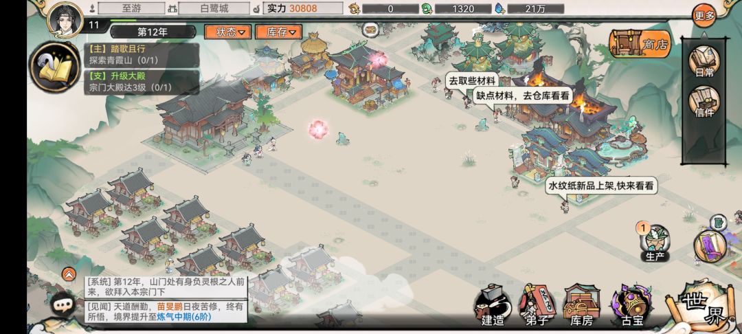 3.弟子这一块,由于没有给出唯一解,所以弟子的标签会很繁复,看的时候眼花缭乱,而且弟子战力高的生产也高,我个人认为这是不合适的,战力高的弟子生产就应该低,生产高的弟子反之。