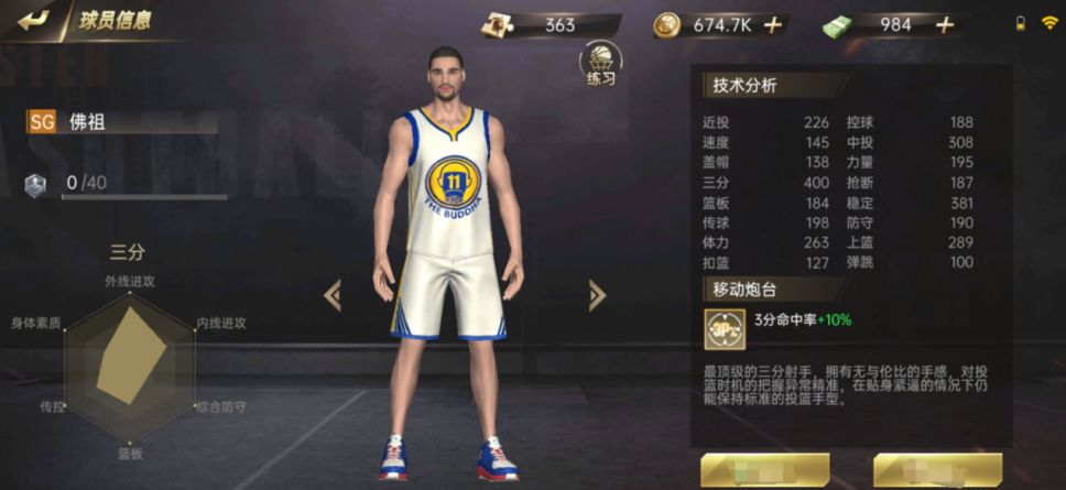 在《篮球高高手》手游中得分后首选推荐【佛祖】,一手不错的三分球和中投能力,以及控球能力不错,可以兼职控球后卫,所以小编觉得得分后卫【佛祖】是非常不错的选择而且性价比非常高接下来我们分三块来介绍得分后卫的技能搭配以及作用:技能搭配推荐搭配:拉球后撤+背后过人+变相跳步突破+快速三分球《篮球高高手》中的花式技能是随着等级的升高而不断增加的,学习的技能越多可搭配的方案就越多,那么如何利用好这些技能槽就是重中之重了。几个运球技能都是SG的主要得分方式,尤其是分段不高的时候,能运用好【拉球后撤】,背后运球过人和变相跳步突破组合技就够对面喝一壶的了,在队伍打不开局面的情况下需要SG依靠个人的进攻能力得分。尤其是突破对方后,【虚晃+快速投篮】堪称是SG的灵魂技能,从三分线内可以直接撤出三分线外投篮,搭配其他组合技使用效果显著。