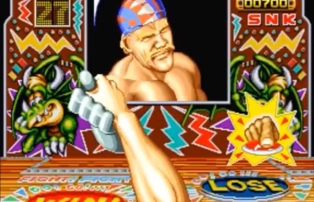 《饿狼传说》的奖励关卡就十分滑稽,玩家需要和一个面相凶恶的大汉掰腕子,敲击A键的频率越快,就代表自己使出的力气越打,很多人都为了能在奖励关找回场子埋头狂按A键,结果关还没过,机器就被拍坏了。