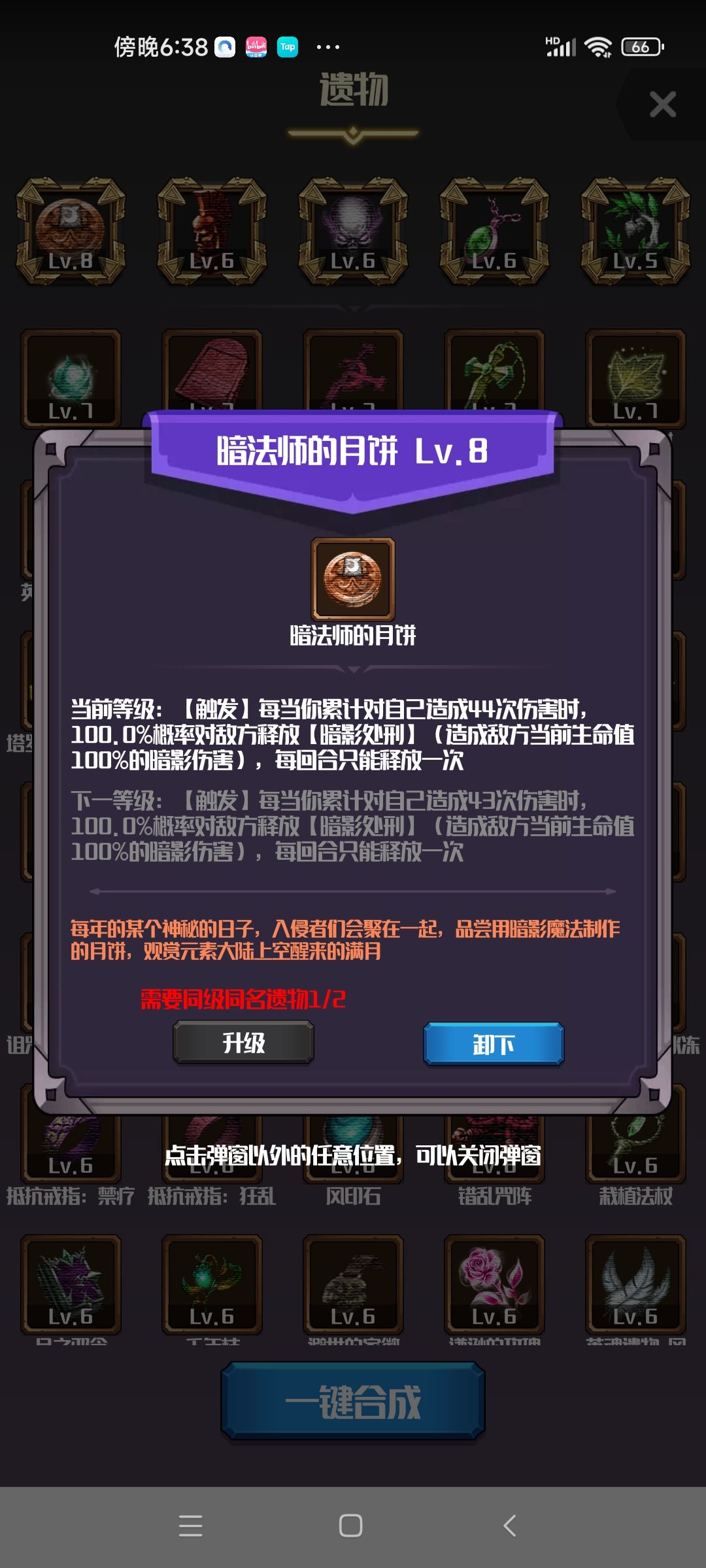 我自己组了个玩玩但好像不是能够正常触发,回头查了战斗记录,没看到有缠绕或麻痹等不能触发debuff,但实际就是没有触发。上图说明,先上我的遗物,8级月饼需要44次触发(疯狂ntr)。