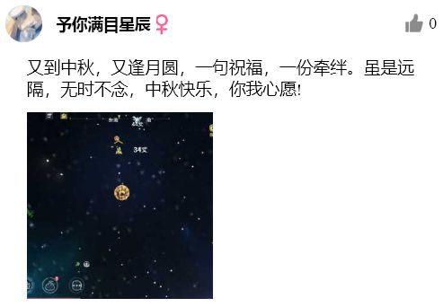 咪姐点评:这位旅者的祝福语也太香了吧!什么酥月饼,什么月桂树,看完这位旅者的祝福,咪姐只想一头栽到月饼海里,狂吃月饼去!