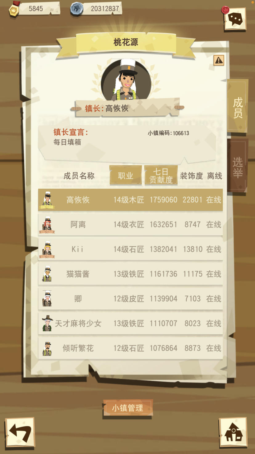 明天八级了,找活跃玩家,目前只缺木匠,还有两个位置,需每天填箱子,可协助升级房屋,要进群,小镇玩家都比较好相处,心动的可以联系,主要建筑都已升级完毕 游牧、军团,镐子、斧子、猎弓,都齐全