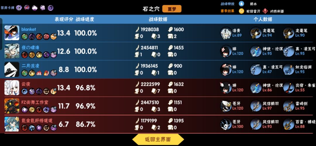 首先由于战场武器系统的加入,低配玩家有生存空间也就有了一定的输出能力,因为战场等级越高,系统武器的伤害也会随之越高的,其次赛季主流输出卡牌依旧是回旋镖和力代,在危险和噩梦图都非常的实用,也是主要的输出手段,高爆发往往是离不开那几张卡牌的。危险实用的卡牌就是王祝和魁首,特别是魁首卡牌,在危险樱图的紫鬼很多动症,拿到魁首买一张反转加高级武器秘籍可以直接二大的,在樱图大部分队友的输出都是不足以秒掉紫头的,所以二大就会很重要(个人经验),p2就更简单了,稳定速度路是可以支撑得起大卡和回旋镖的消费的。