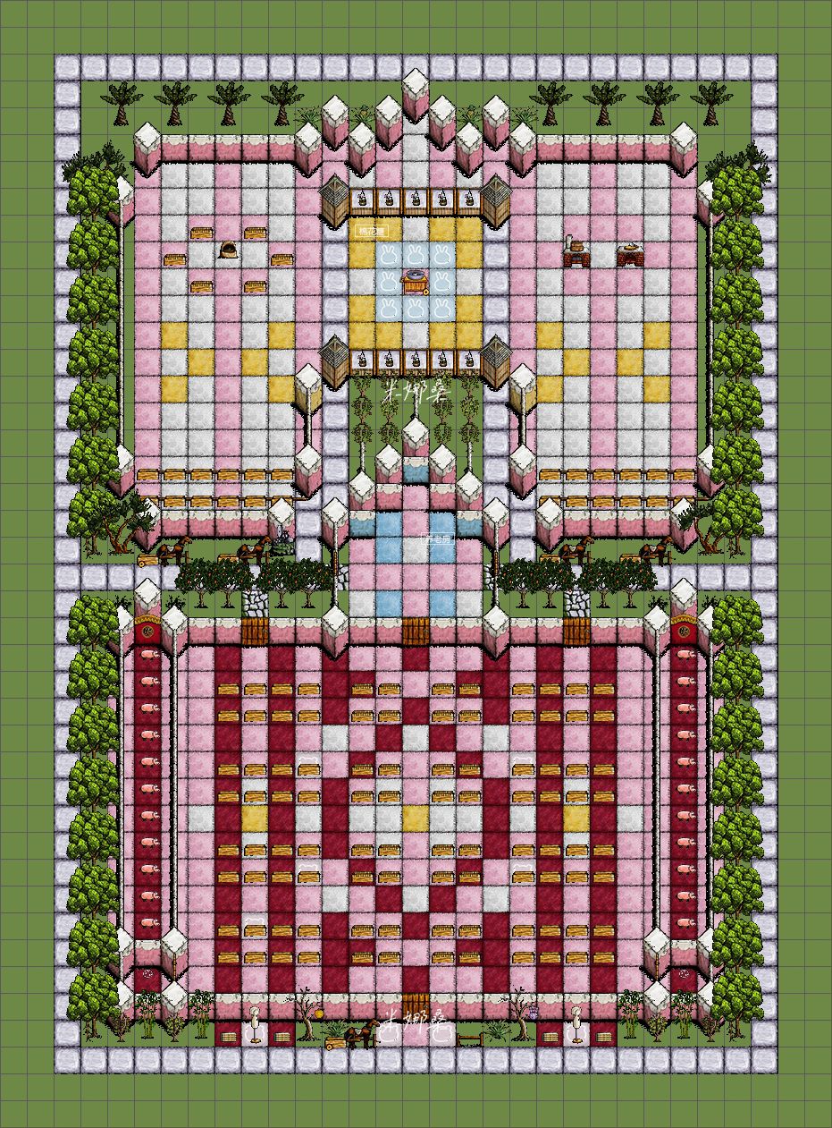 ⑥粉嫩系:厨房(包含棉花糖制造间)+养老房+叠食区+道路绿化(柴火)
